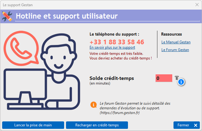 Le support technique téléphonique (hotline) fonctionne en mode crédit-temps : vous achetez du temps de technicien support, et le consommez quand vous voulez.