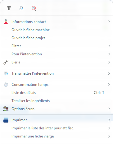 The Print button prints the intervention sheet, according to the printing options chosen in the general settings.
