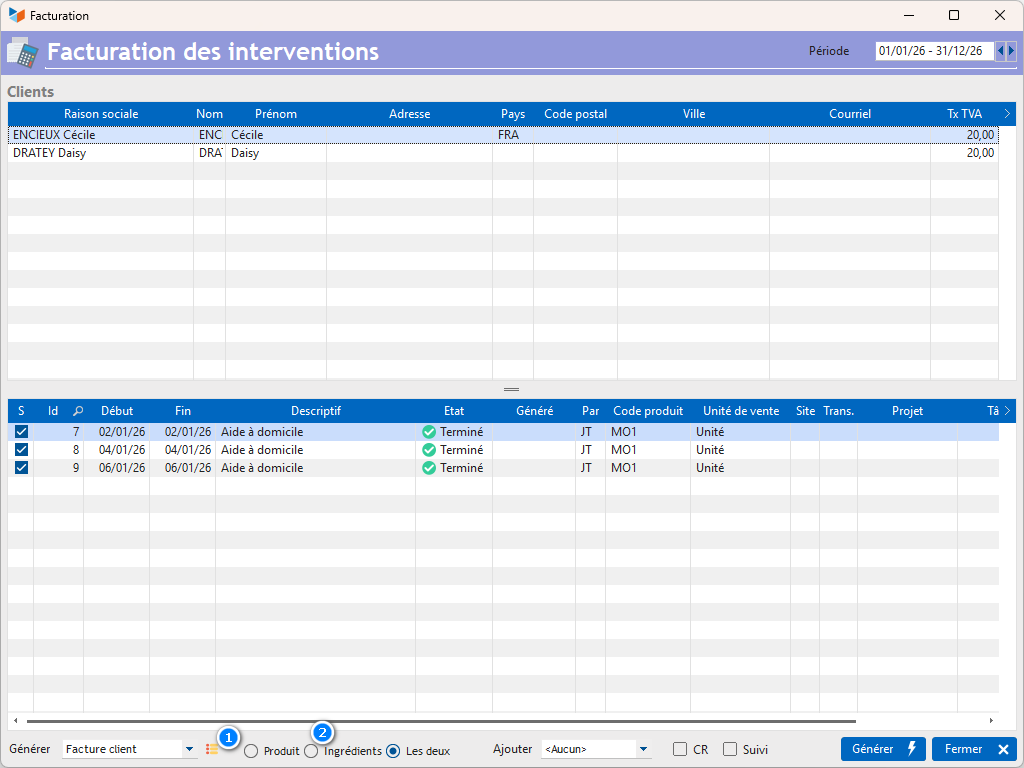 Before issuing invoices, it is strongly recommended to check the interventions taken into account for the period.