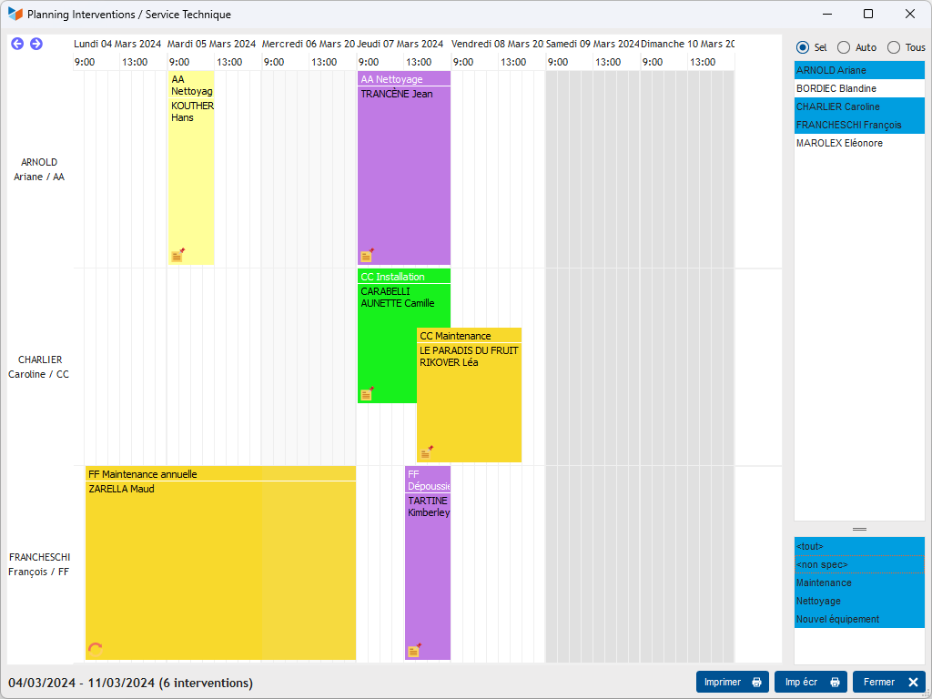 - View teams allows you to display the schedule of the teams carrying out the interventions (otherwise, the schedules displayed are only those of the main stakeholders)