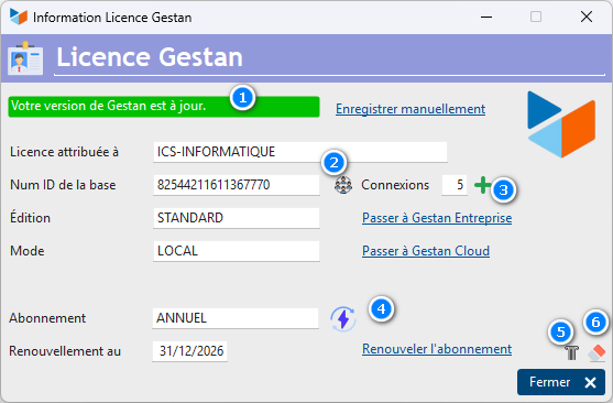 Access: Open the Gestan software, then use the menu? → Gestan Entreprise → Save the license key.