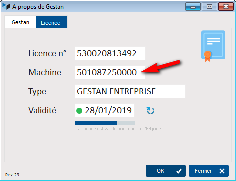 When you change machines or change the hard drive of your machine, or reinstall Windows, the machine number detected by Gestan changes. The license key therefore also changes.