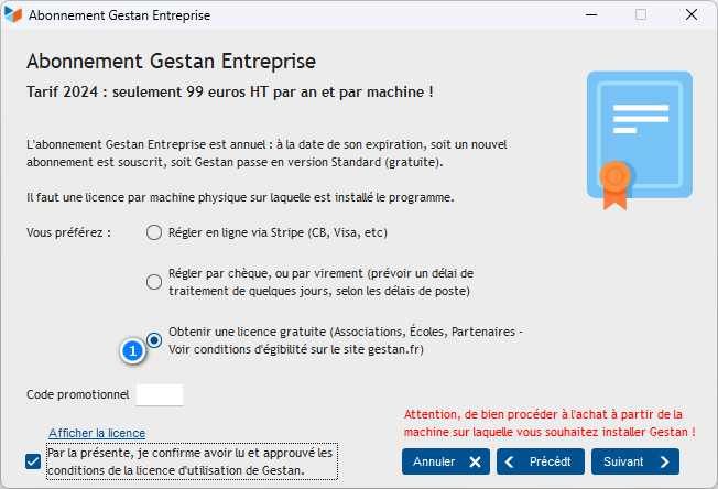 FIXME A1 proofreading not yet effective for this page. In the meantime, you can ask any questions on the forum. In certain cases (Associations, Schools, Partners), Gestan offers you a free license!