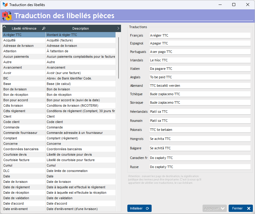 What's more, translated labels can be modified by the user: not only does this allow you to correct the labels in one language, it also allows you to replace one language with another.