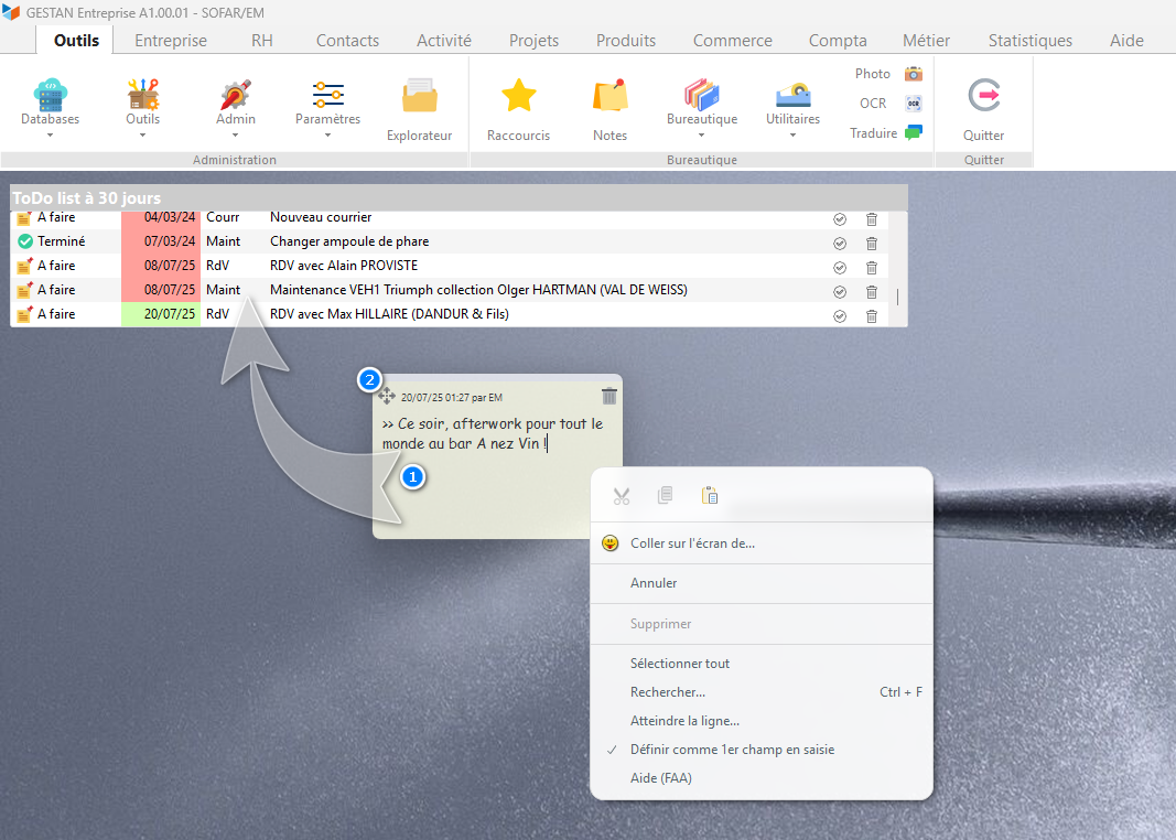 Gestan allows you to “paste” post'it on the main screen, it's very practical!