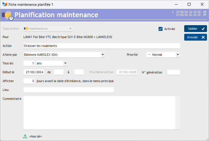The Activated box allows you to activate or deactivate the automatic generation of the maintenance operation.