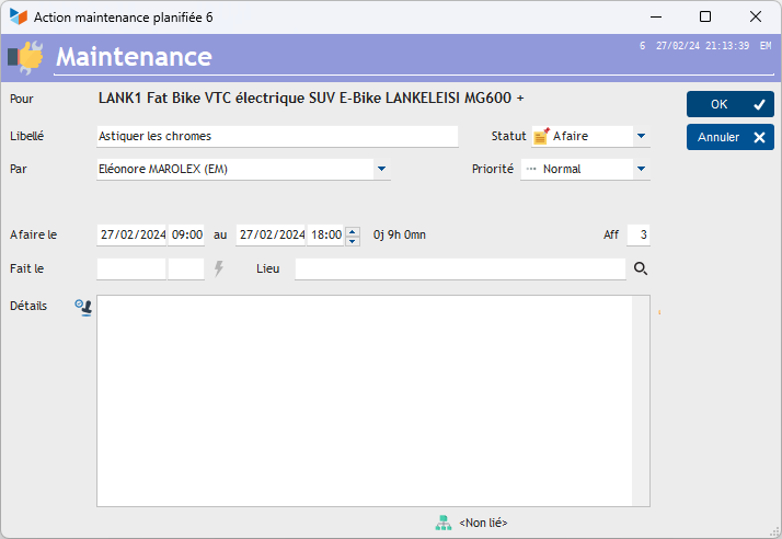 It is possible to link a maintenance action to a project or task.