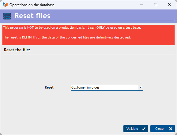 Simply select the file to be Reset and click on the Validate button.