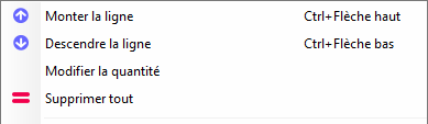 Quantities can be modified directly in the base (or via the contextual menu).