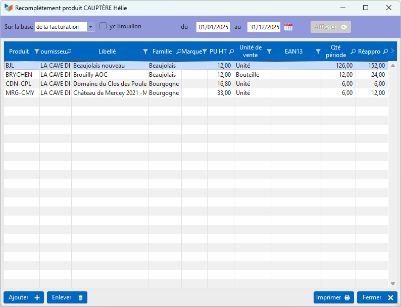 The Restock column can be entered: it is possible to enter the quantities to be restocked. The Replenishment with period qty option from the table context menu allows you to populate the Replenishment column with the contents of the Period qty column.