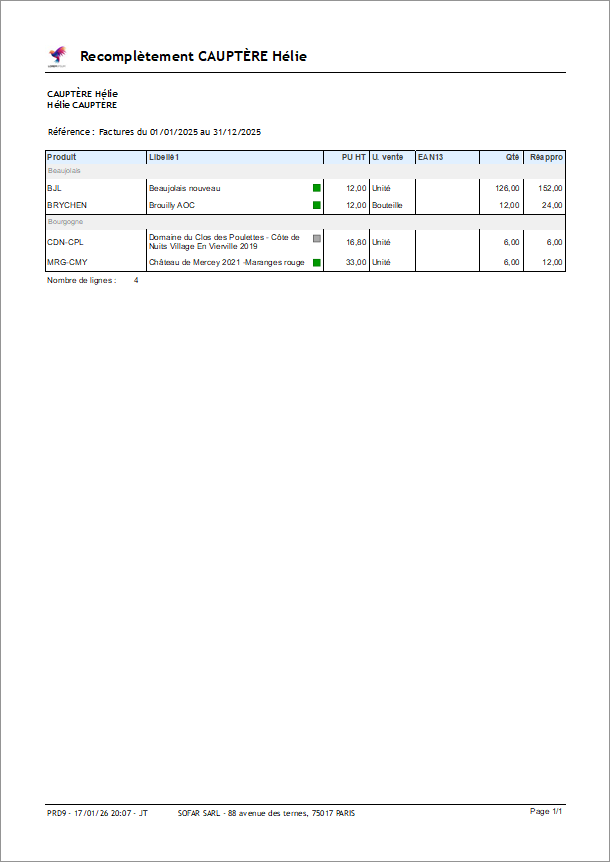 It provides useful information to sales departments, particularly field salespeople: before a customer visit, it is advisable to have the list of products ordered by the customer, in order to consider refill orders.