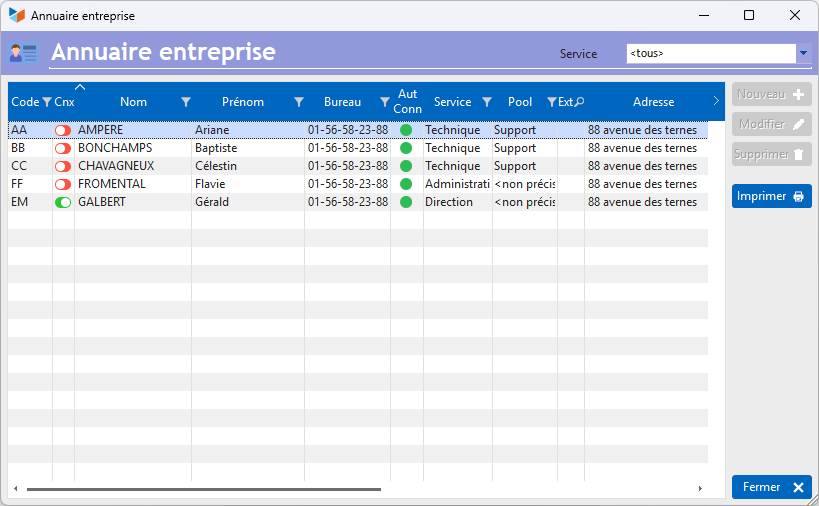 This is the list of company members (registered as Gestan users), accessible to users who do not have administrative rights.