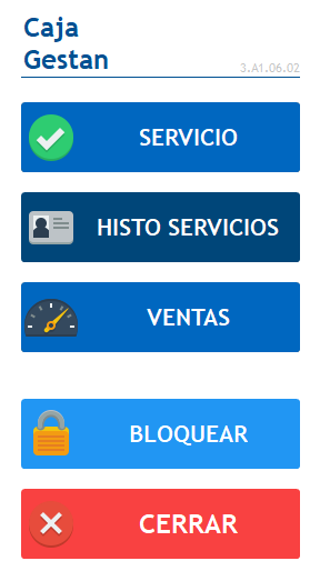 Si los datos de acceso son correctos, se abrirá el menú principal de la caja táctil (el mismo al que se accede a través del menú Gestan Profesión → Caja táctil → Iniciar la caja, si el inicio no fue automático).