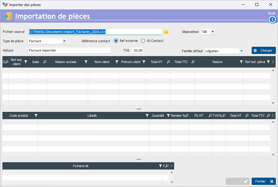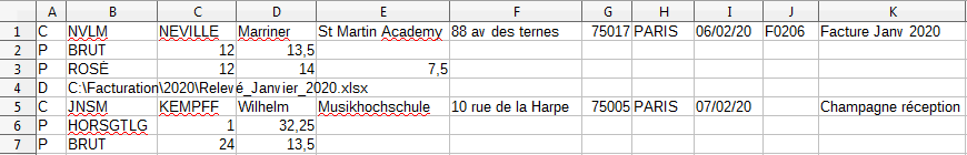 1 2 3 4 5 6 7 P | CD_PROD | CANTIDAD | PU HT | %R | LIBPRODUCTO (opcional) | %IVA (opcional)