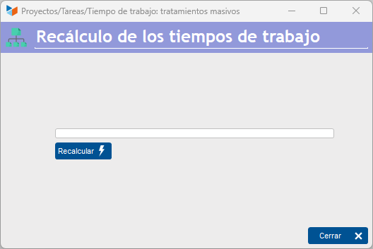 Esta pantalla se utiliza para recalcular los tiempos de trabajo de todos los proyectos.