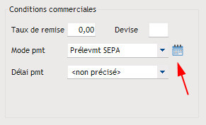 - ses informations SEPA, via la sélection du moyen de paiement prélèvement et un clic sur le bouton de saisie des paramètres ci-dessous :