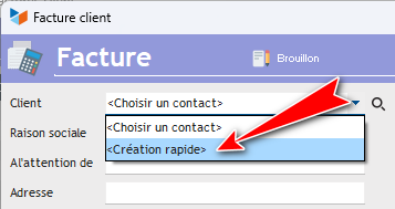 - <création rapide> : qui permet de créer rapidement le contact s'il n'est pas déjà présent dans la liste principale.