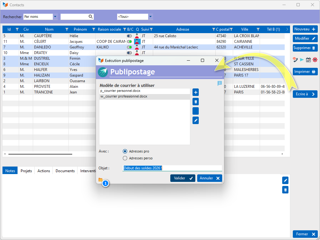 Pour effectuer un publipostage pour vos clients :