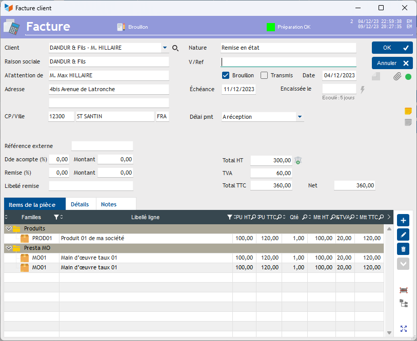 Ci-dessous l'exemple d'une facture client.