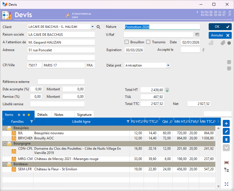 Les devis sont les pièces par lesquelles votre entreprise s'engage à réaliser, pour un client, un travail défini pour un prix convenu.