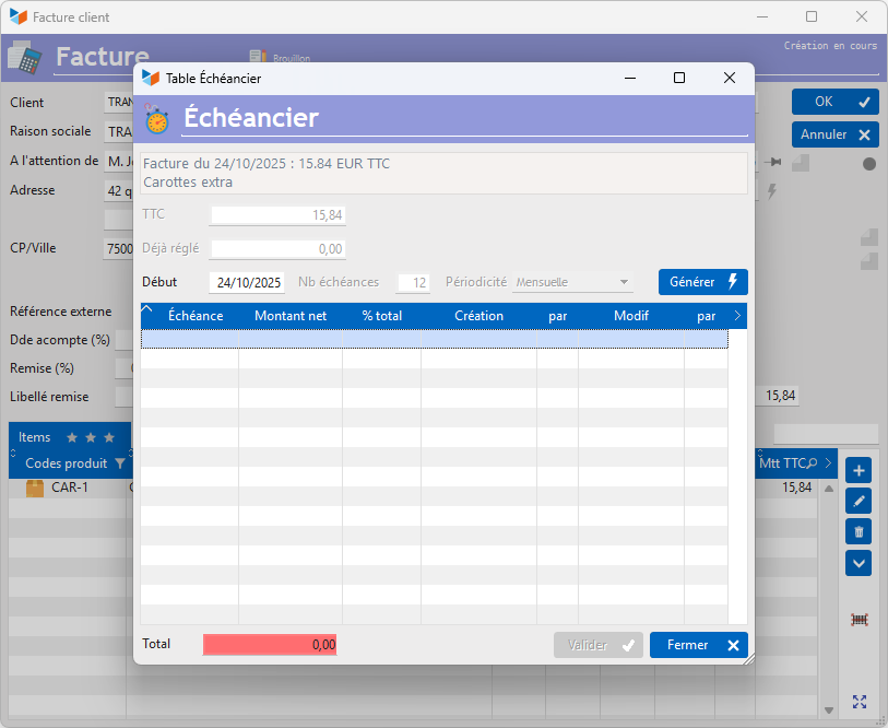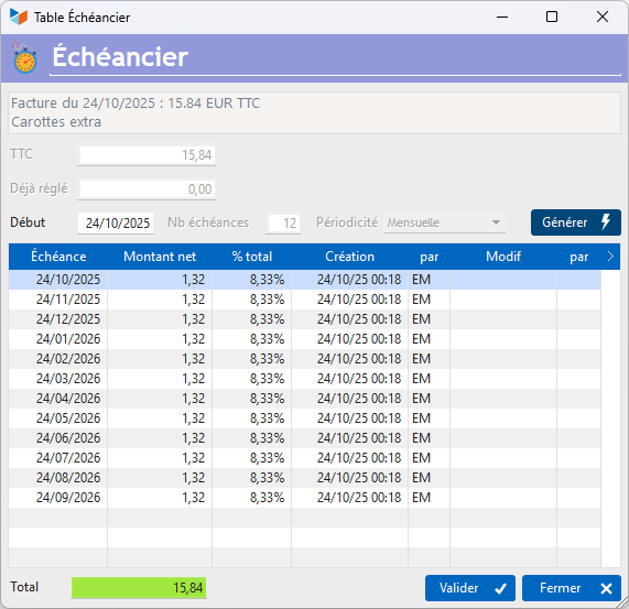Le bouton Générer permet de générer automatiquement les échéances.