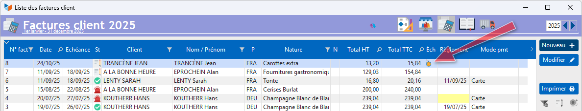 L'écran spécialisé permet de suivre vos factures sous échéances, et de savoir les factures d'échéances qu'il faut émettre ou relancer.