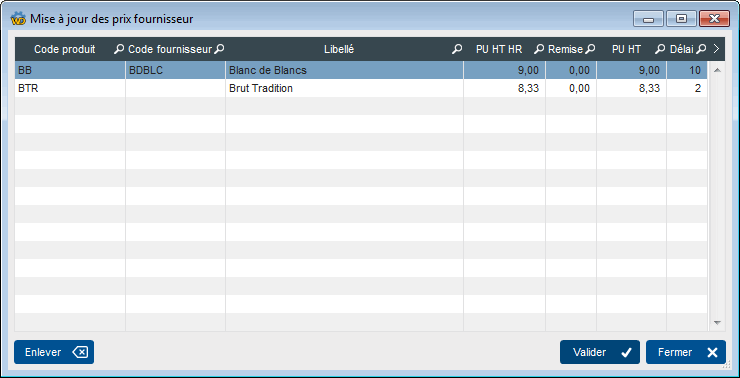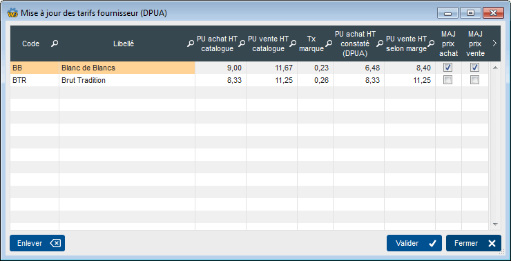 Pour utiliser cet écran, il faut que la gestion des tarifs fournisseurs soit activée.