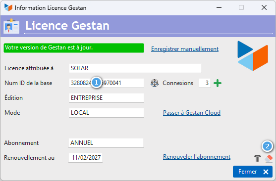 Dans le cas contraire, si votre licence Gestan Entreprise expire dans plus d'un mois, le reliquat de votre licence peut être transféré gracieusement vers votre version A1 !